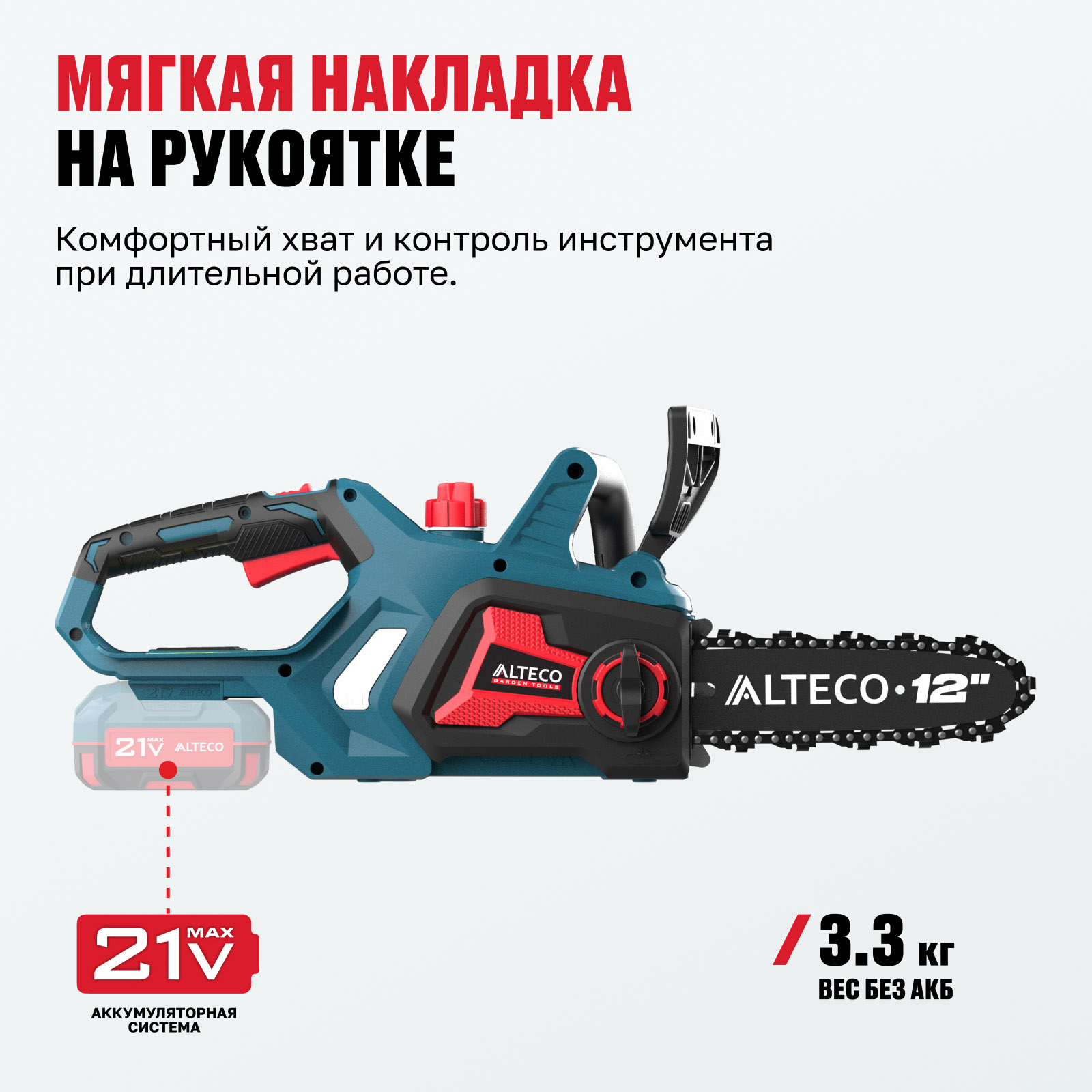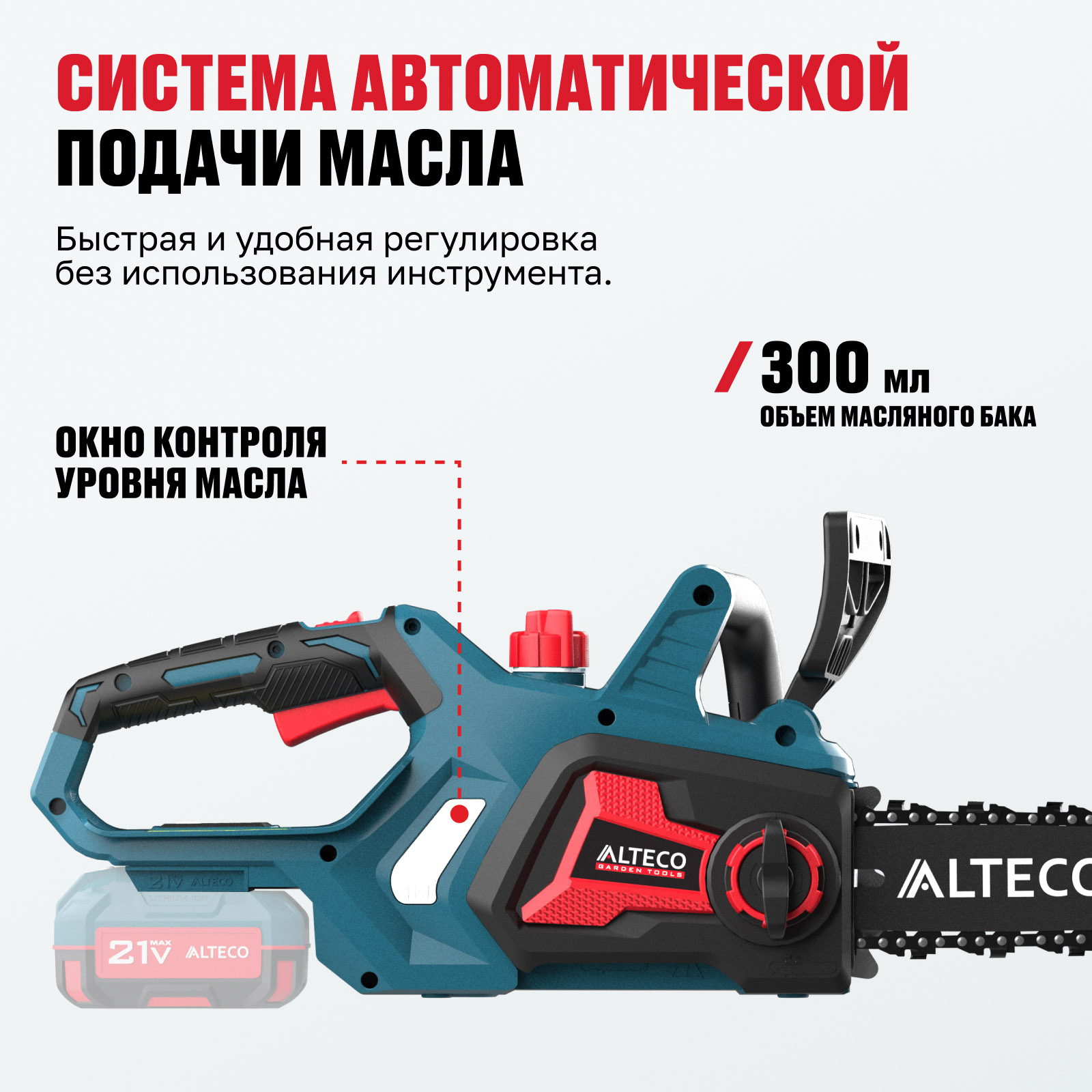 - Часть единой аккумуляторной системы ALTECO 21Vmax — один аккумулятор подходит для всех инструментов этой серии, обеспечивая удобство, экономию и гибкость в работе.