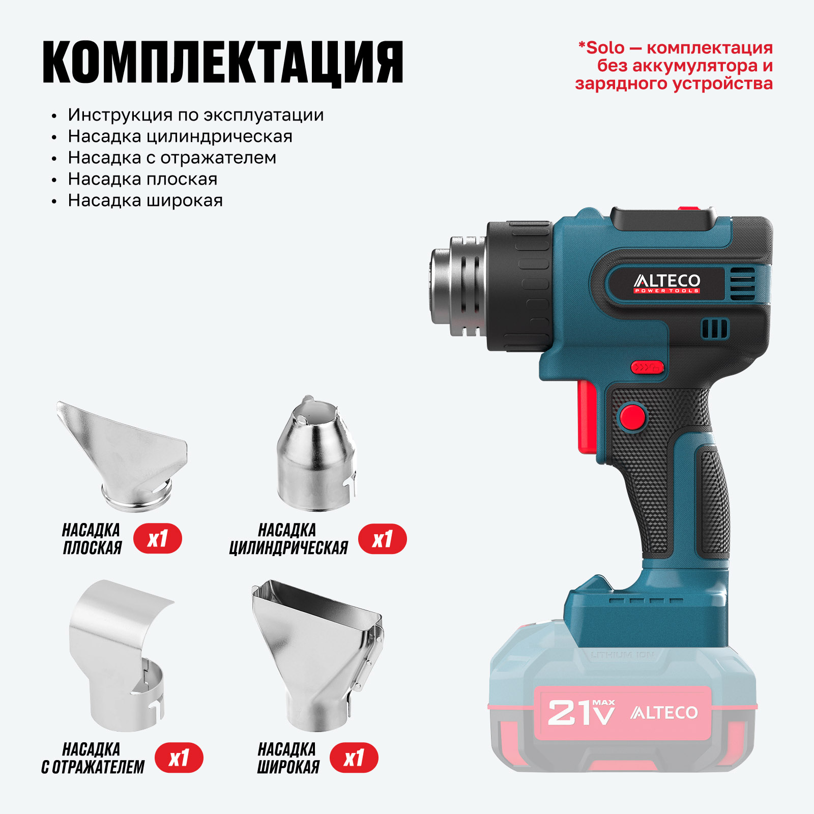 *Solo — комплектация без аккумулятора и зарядного устройства