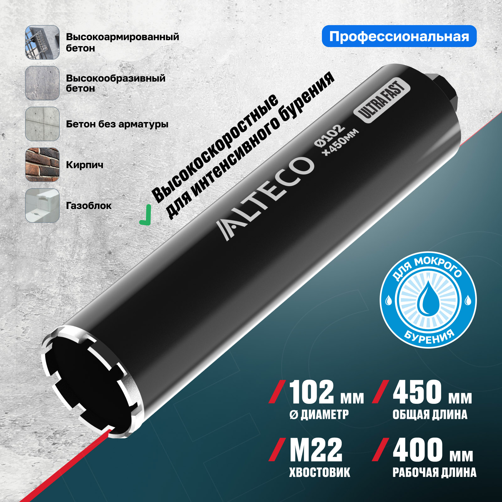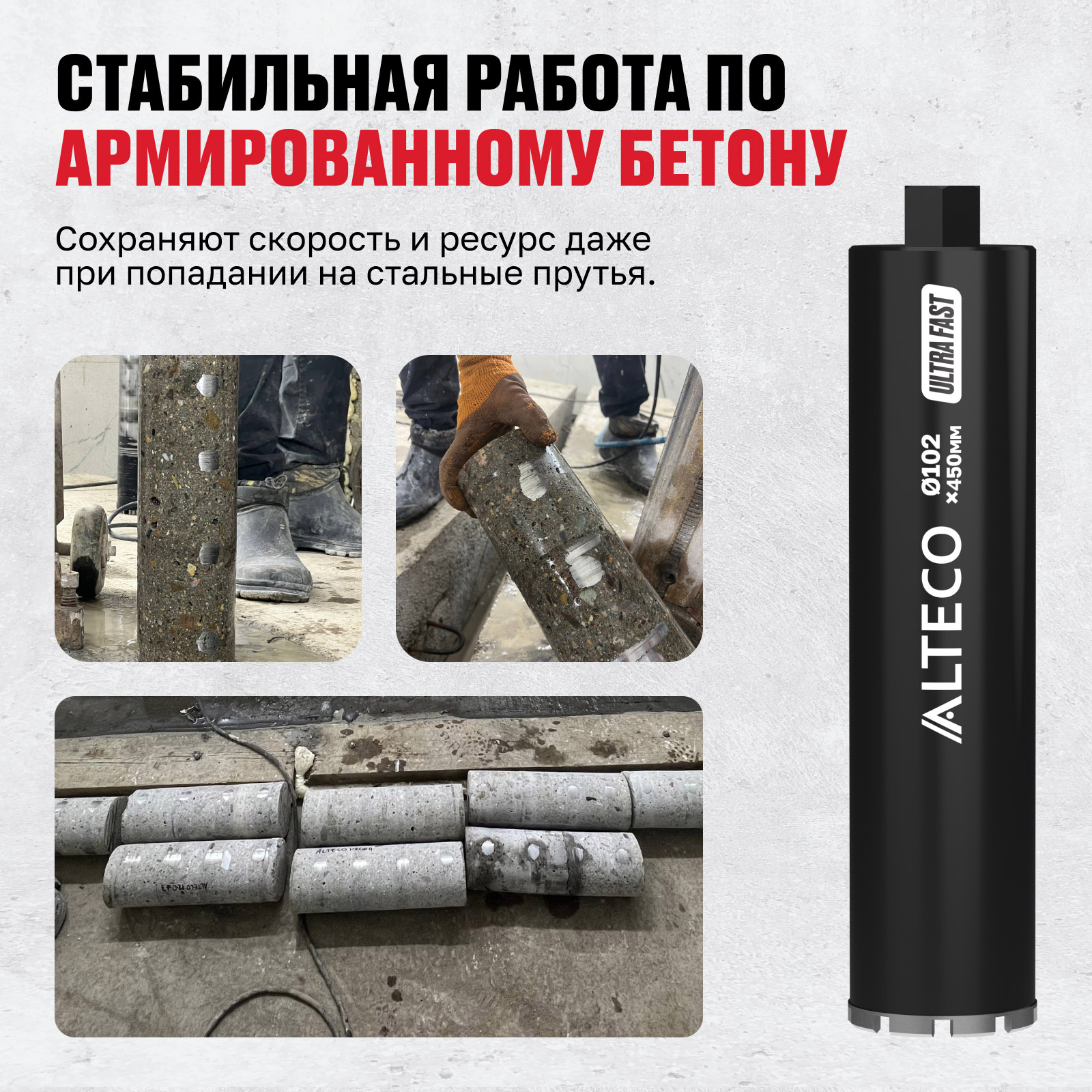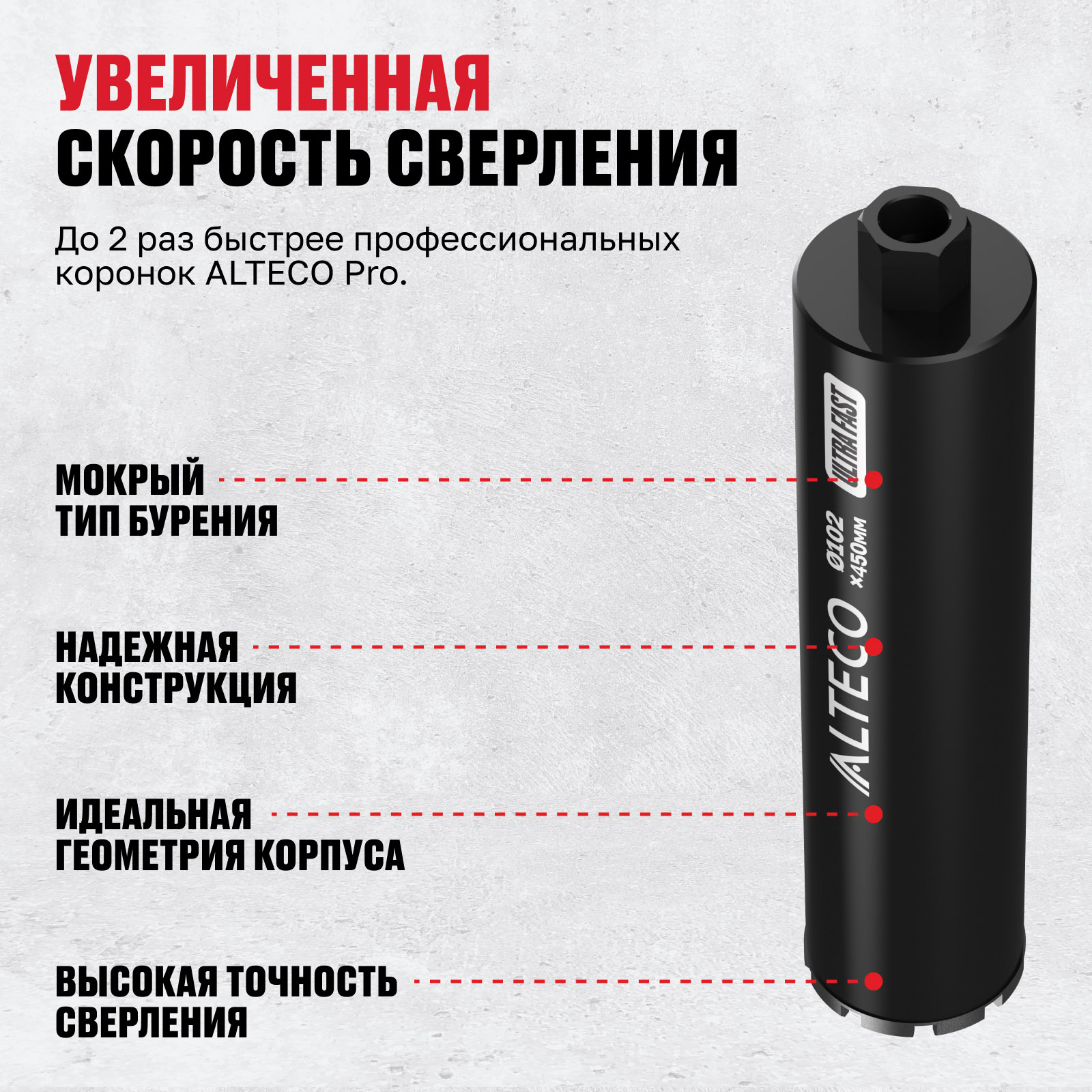 - Увеличенная скорость сверления — до 2 раз быстрее профессиональных коронок ALTECO Pro.