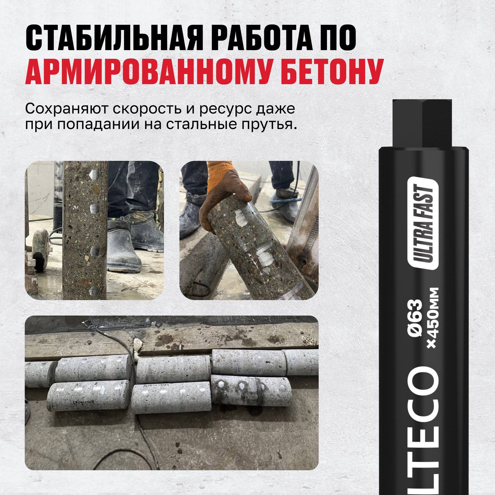 - Увеличенная скорость сверления — до 2 раз быстрее профессиональных коронок ALTECO Pro.
