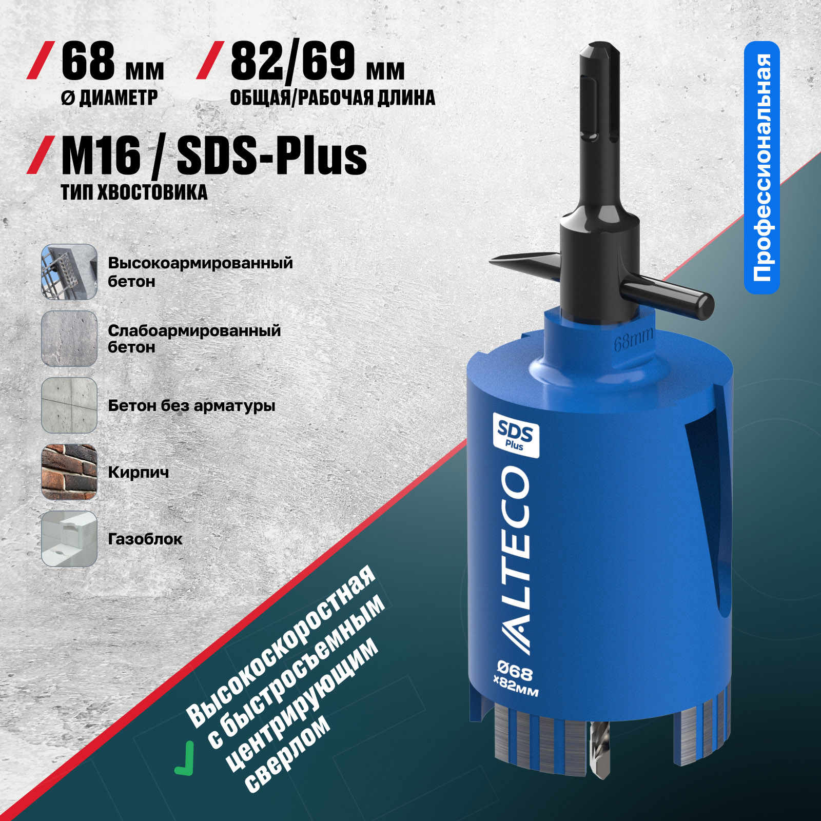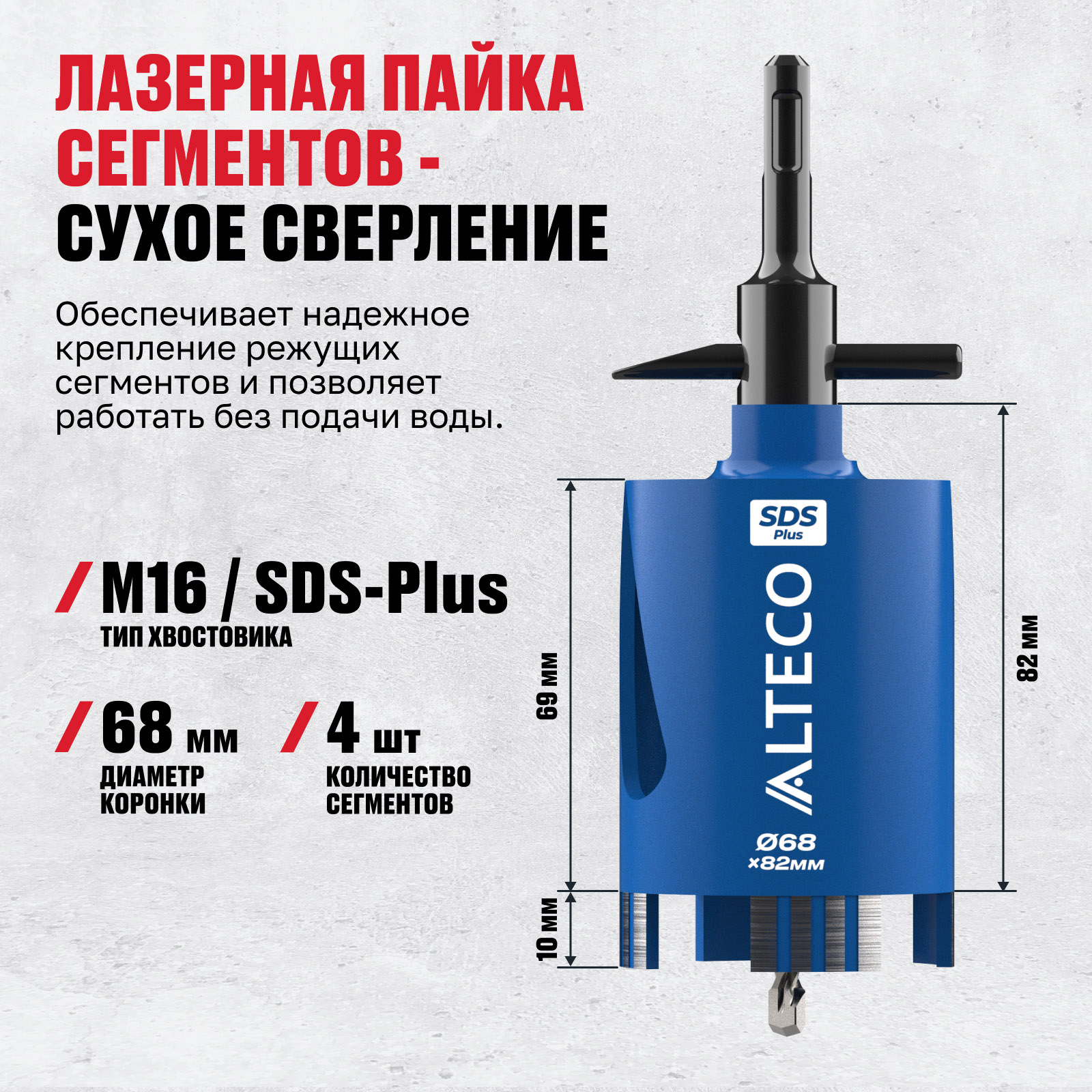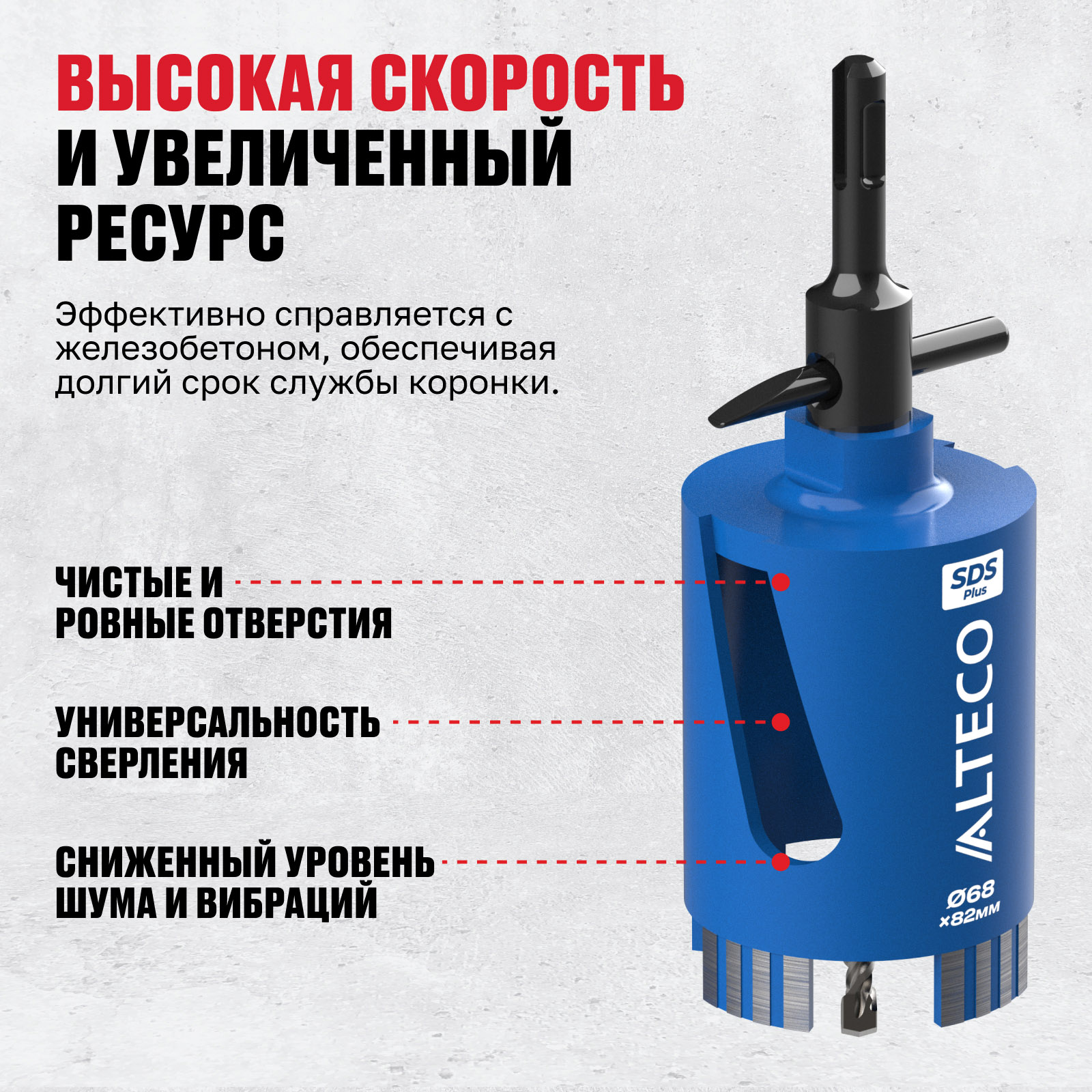 Преимущества коронок ALTECO 68x82 SDS-Plus