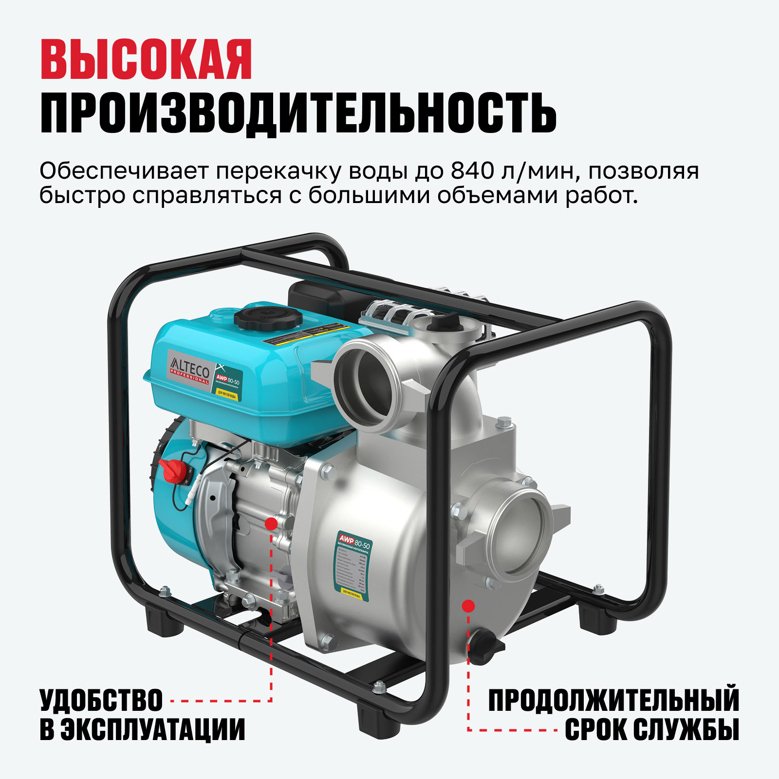 - Высокая производительность – обеспечивает перекачку воды до 840 л/мин, позволяя быстро справляться с большими объемами работ.