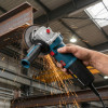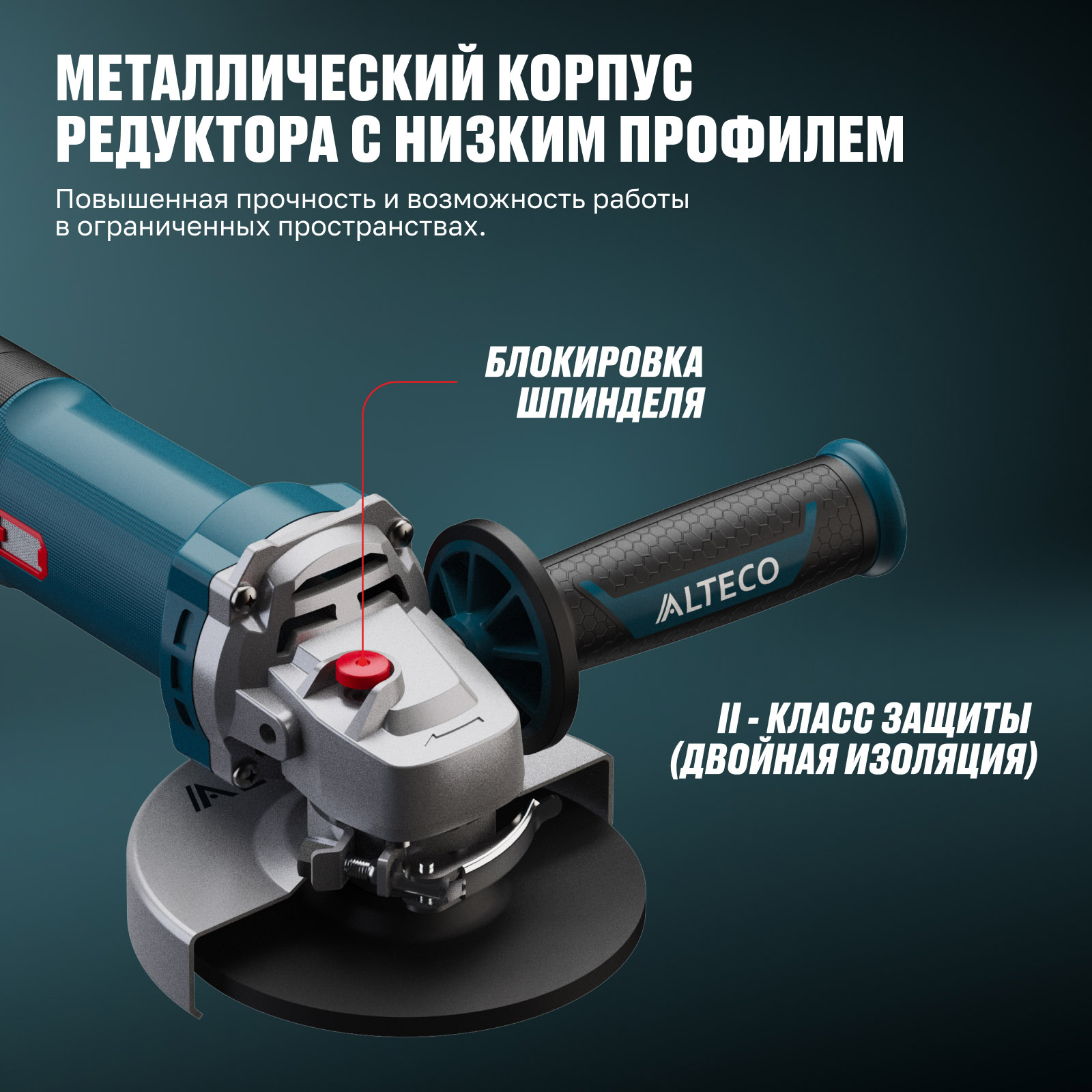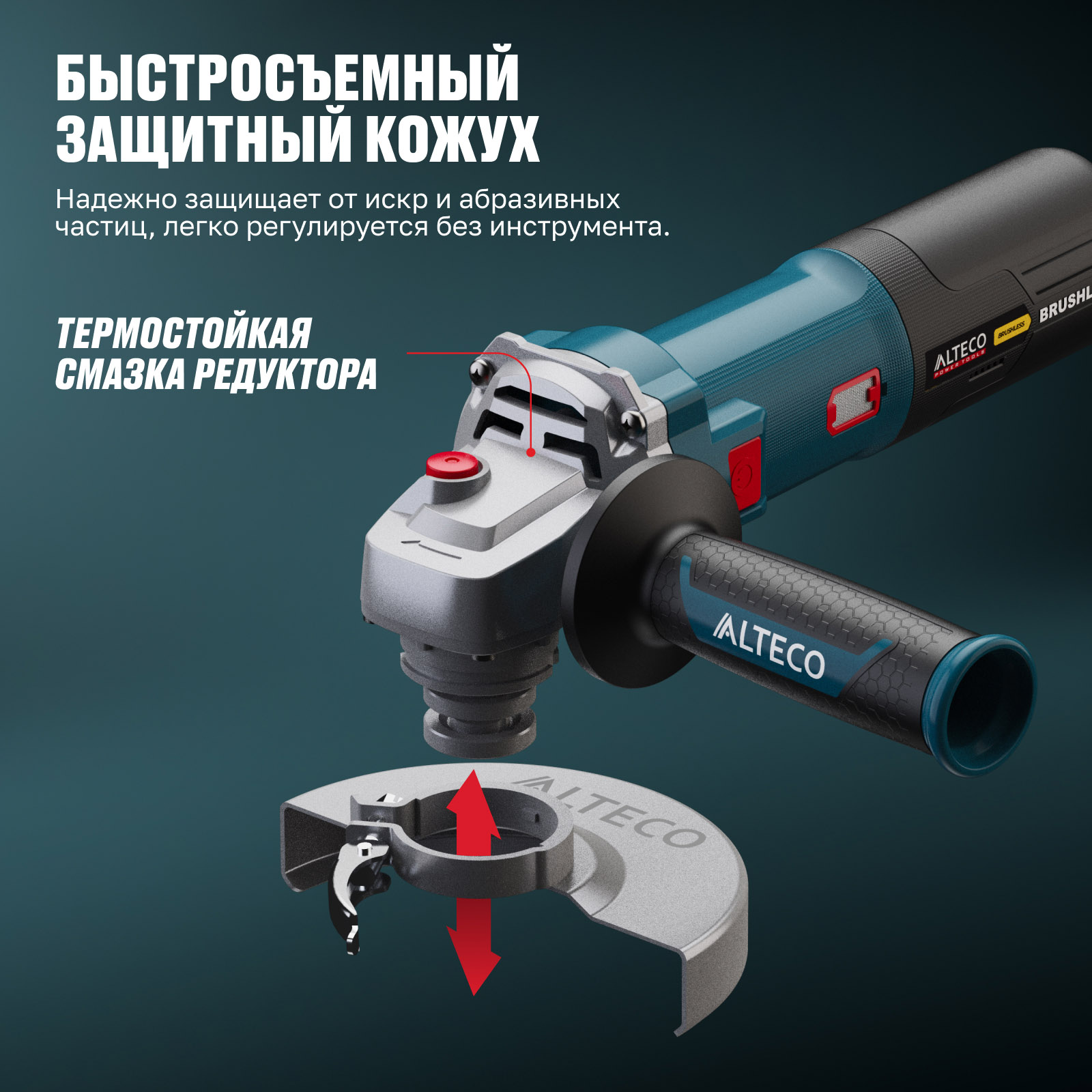- Быстросъемный защитный кожух — надёжно защищает от искр и абразивных частиц, легко регулируется без инструмента.