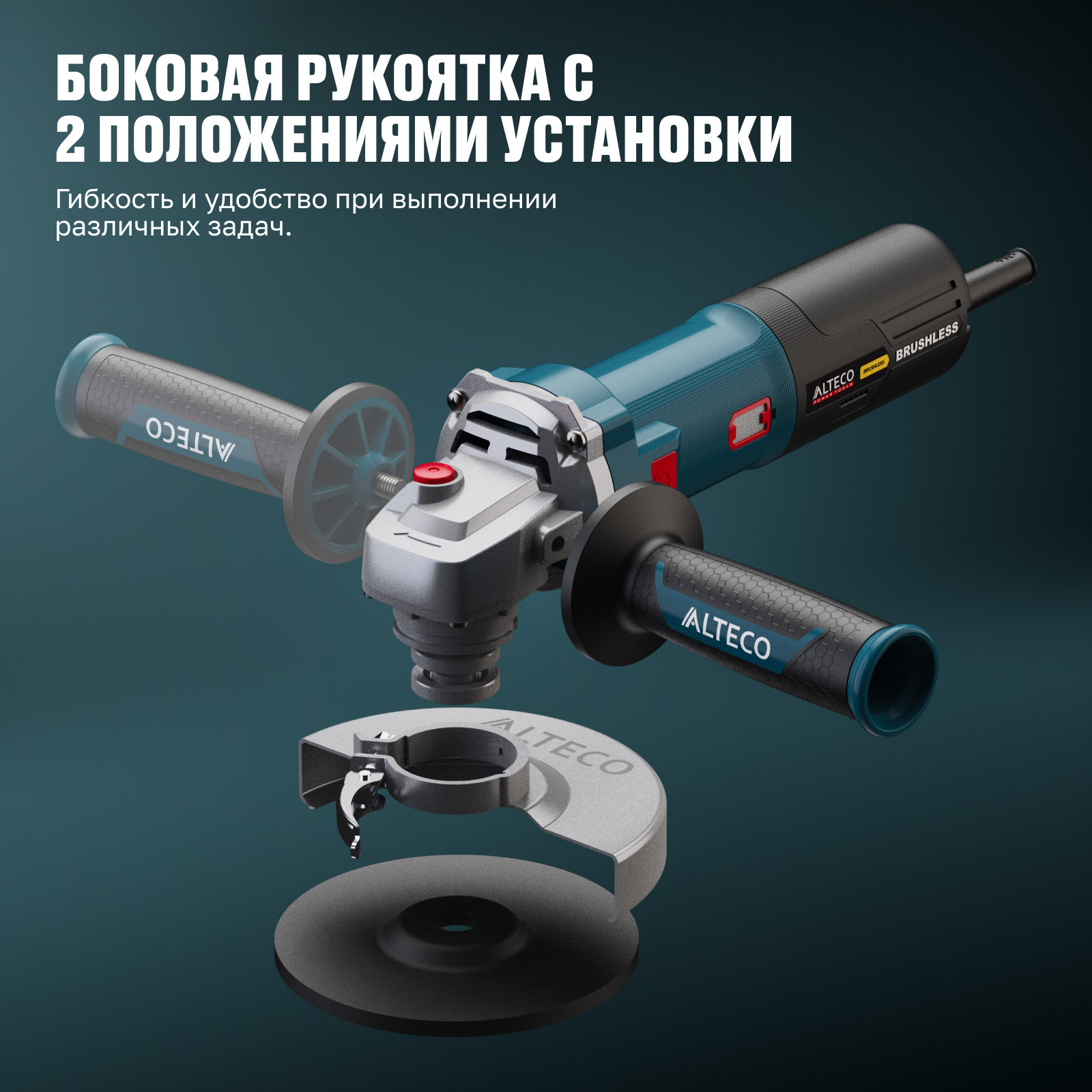 - Дополнительная рукоятка с 2 положениями установки — гибкость и удобство при выполнении различных задач.