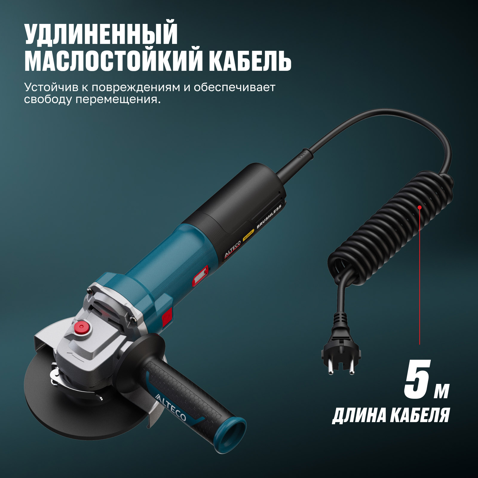 - Удлиненный маслостойкий кабель 5 м — устойчив к повреждениям и химическим веществам, обеспечивает свободу перемещения.