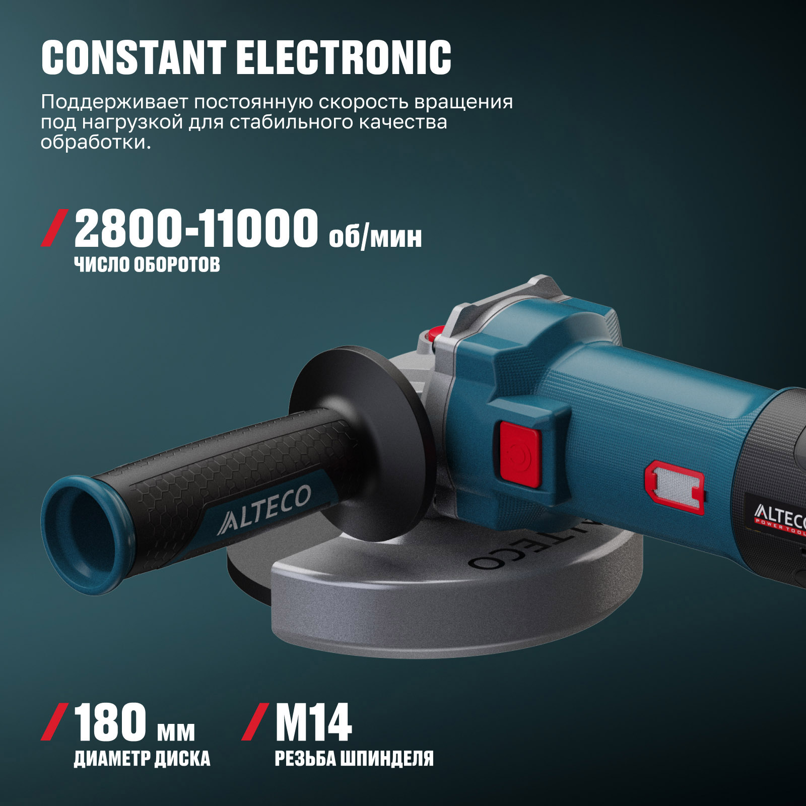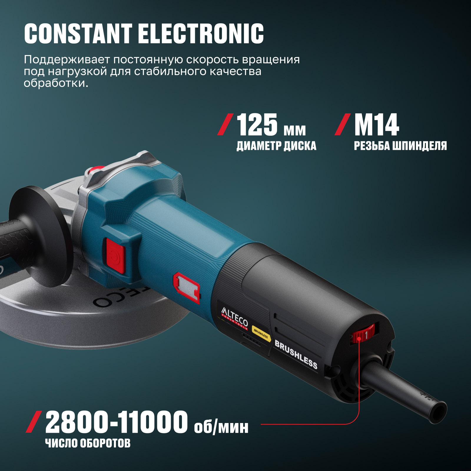 - Constant Electronic — поддерживает постоянную скорость вращения под нагрузкой для стабильного качества обработки.