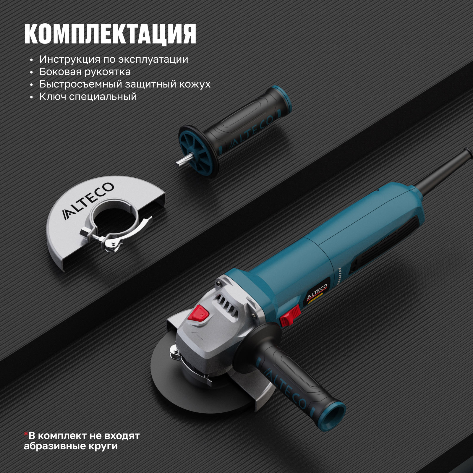 - Быстросъемный защитный кожух — надёжно защищает от искр и абразивных частиц, легко регулируется без инструмента.