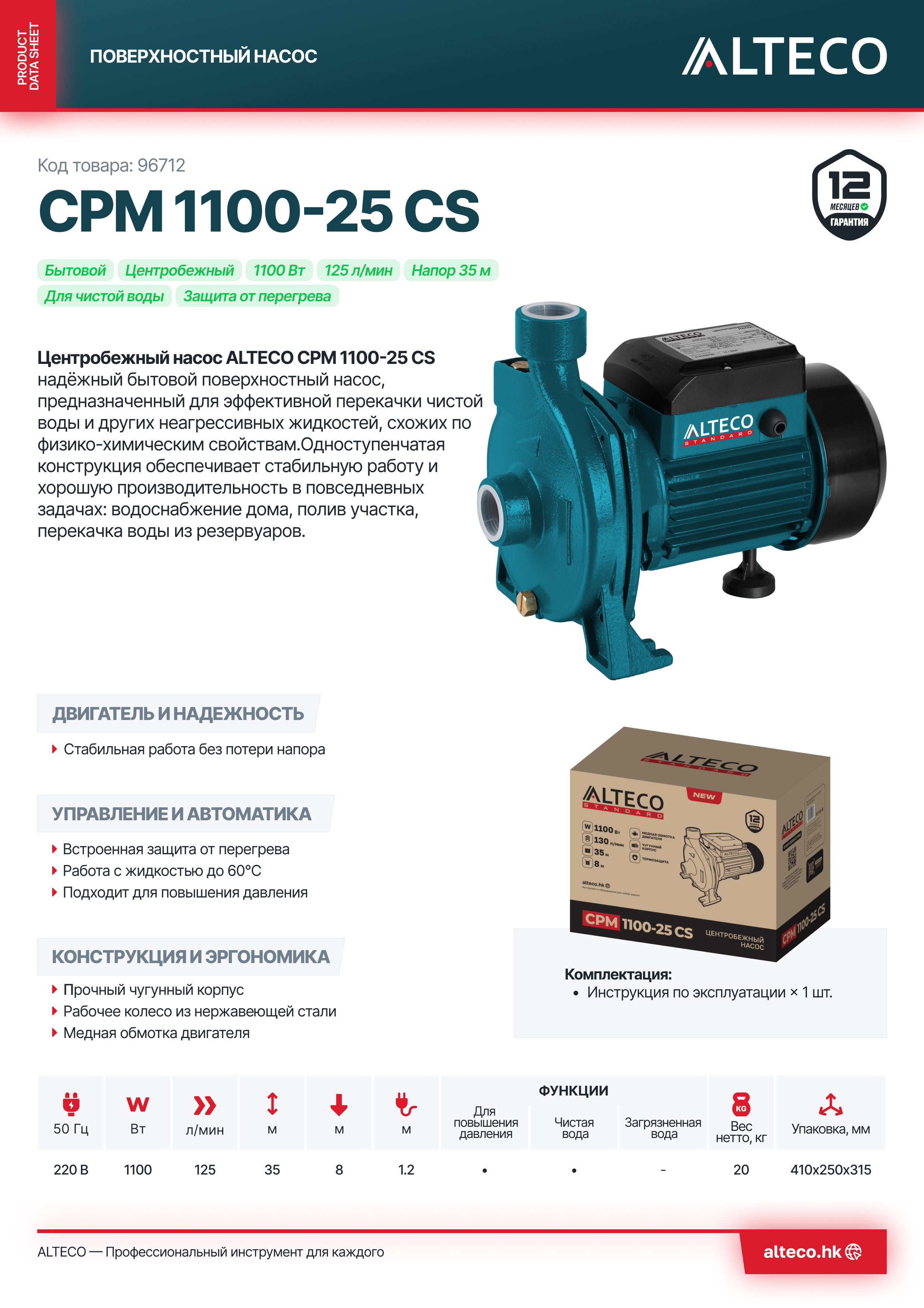 Преимущества ALTECO CPM 1100-25 CS