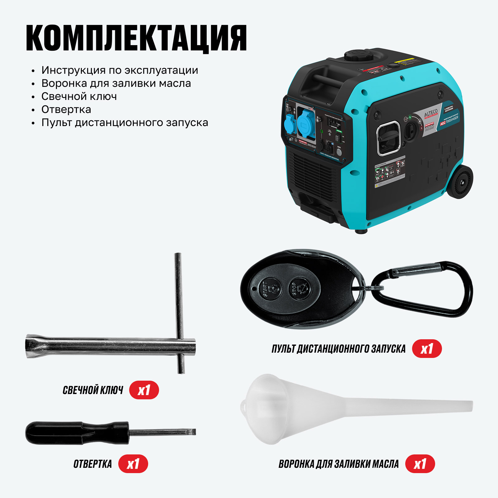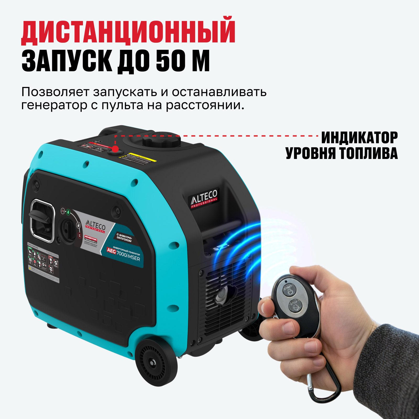 - Дистанционный запуск до 50 м — позволяет запускать и останавливать генератор с пульта на расстоянии.