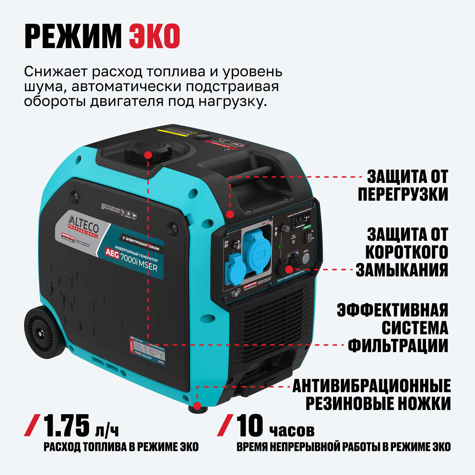 - Компактность и малый вес — заметно легче и компактнее классических портативных генераторов, удобен для транспортировки и хранения.- Электронный индикатор