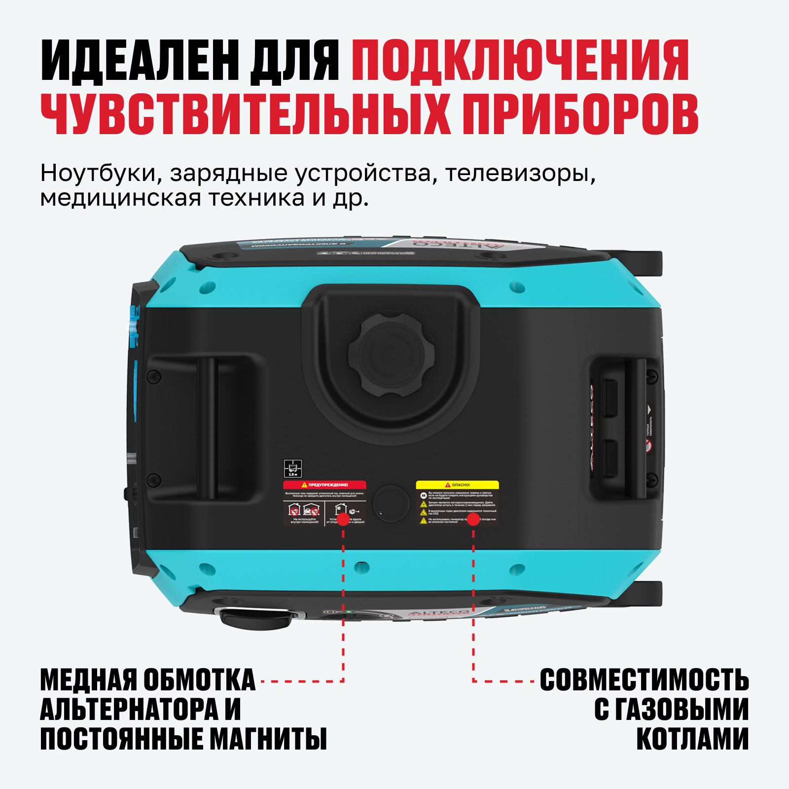 - Инверторная технология — обеспечивает стабильное напряжение и чистый ток, безопасный для чувствительной электроники (THD < 3%).