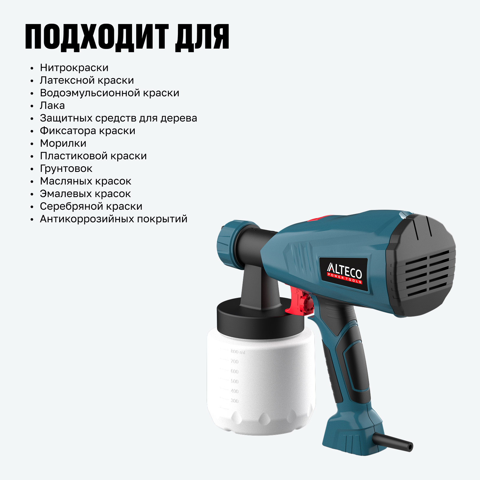 - Производительность 700 мл/мин — обеспечивает быстрый и равномерный перенос краски, сокращая время выполнения работ.