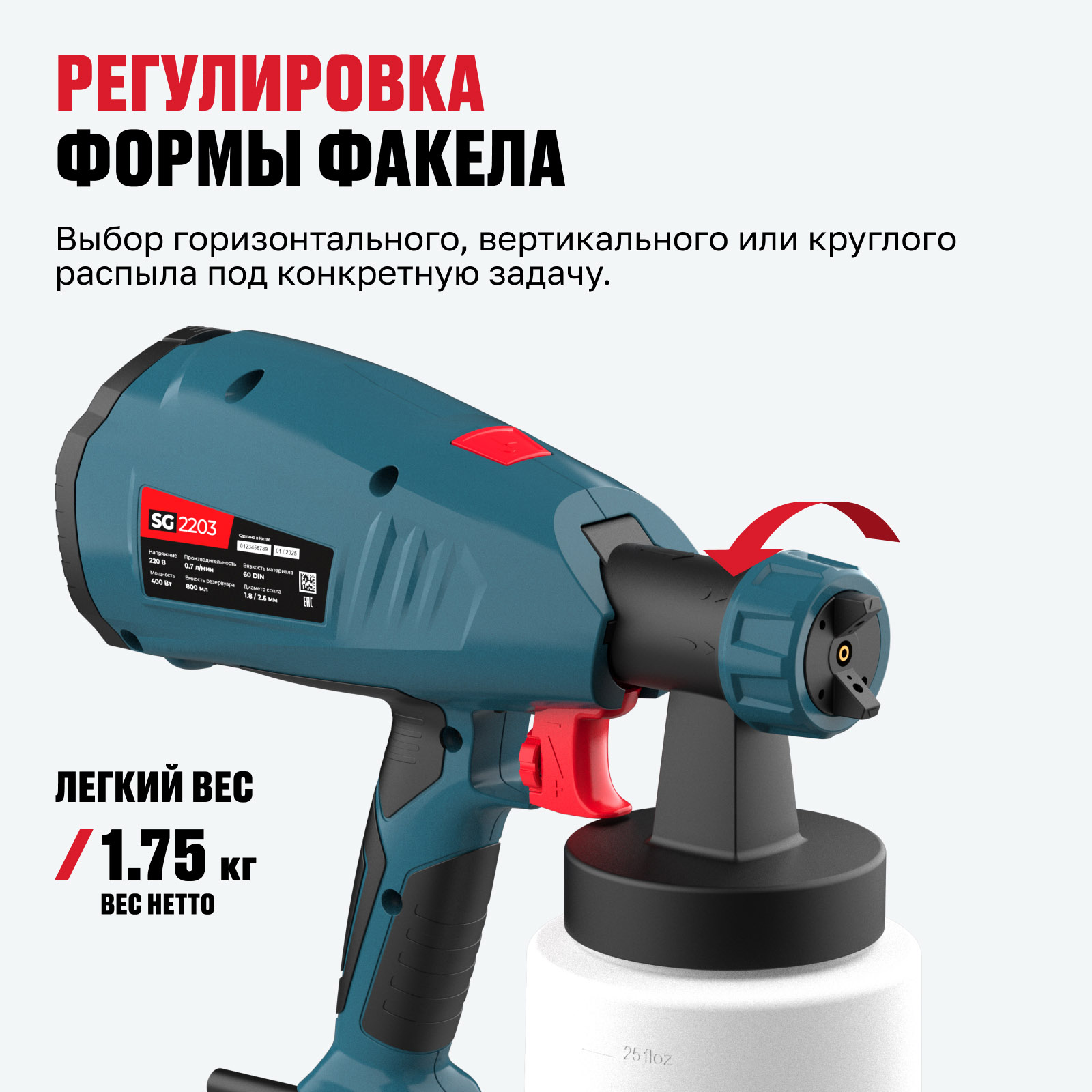 - Регулировка формы факела — выбор горизонтального, вертикального или круглого распыла под конкретную задачу.
