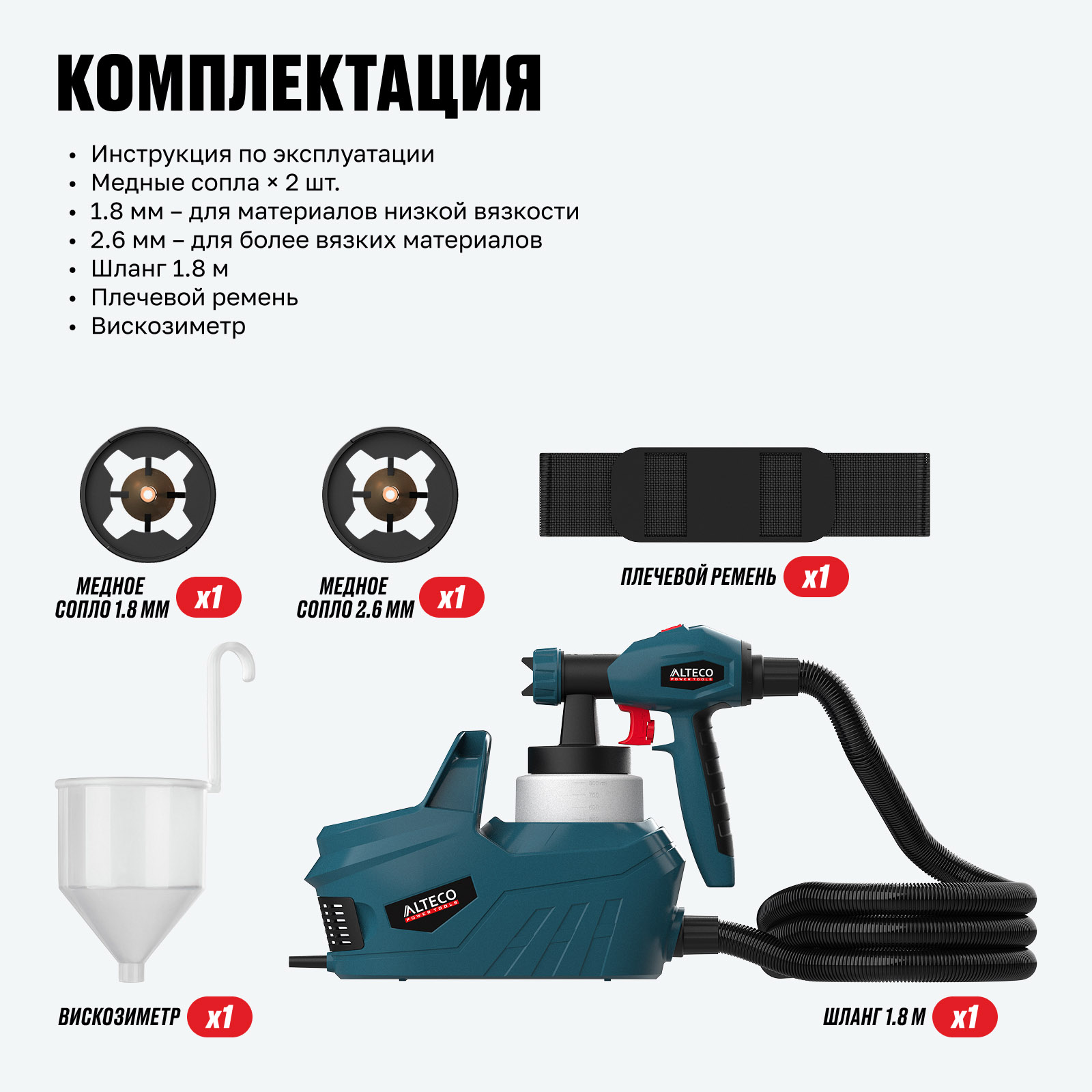 2.6 мм – для более вязких материалов - Шланг 1.8 м × 1 шт.