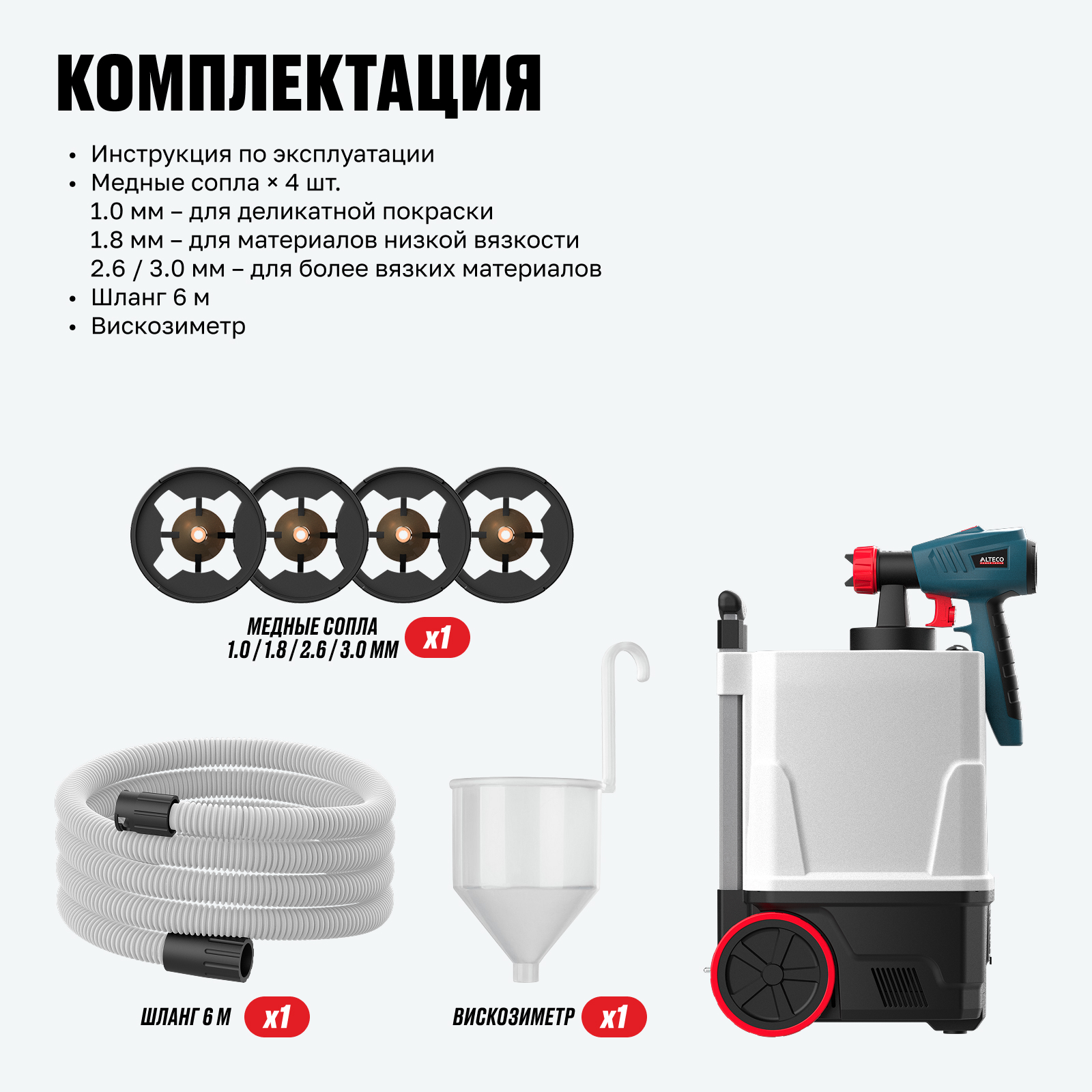 - Высокая производительность 1200 мл/мин — обеспечивает быстрый и равномерный перенос краски, сокращая время выполнения работ.