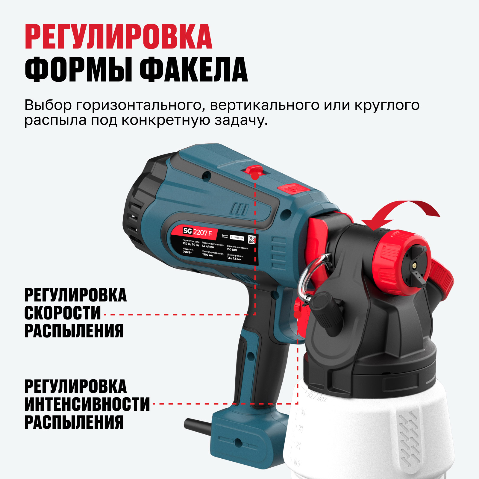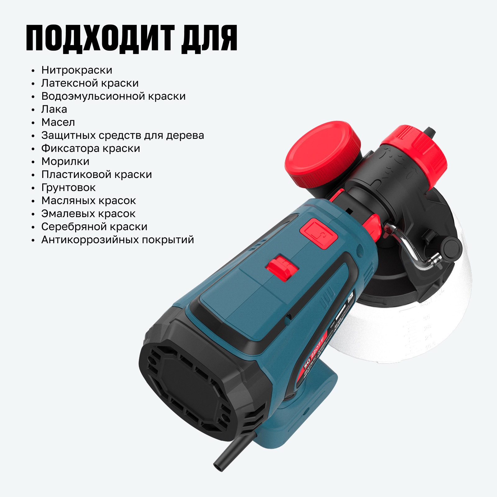 - Точная настройка подачи краски — регулировка интенсивности и скорости распыления для контроля результата.