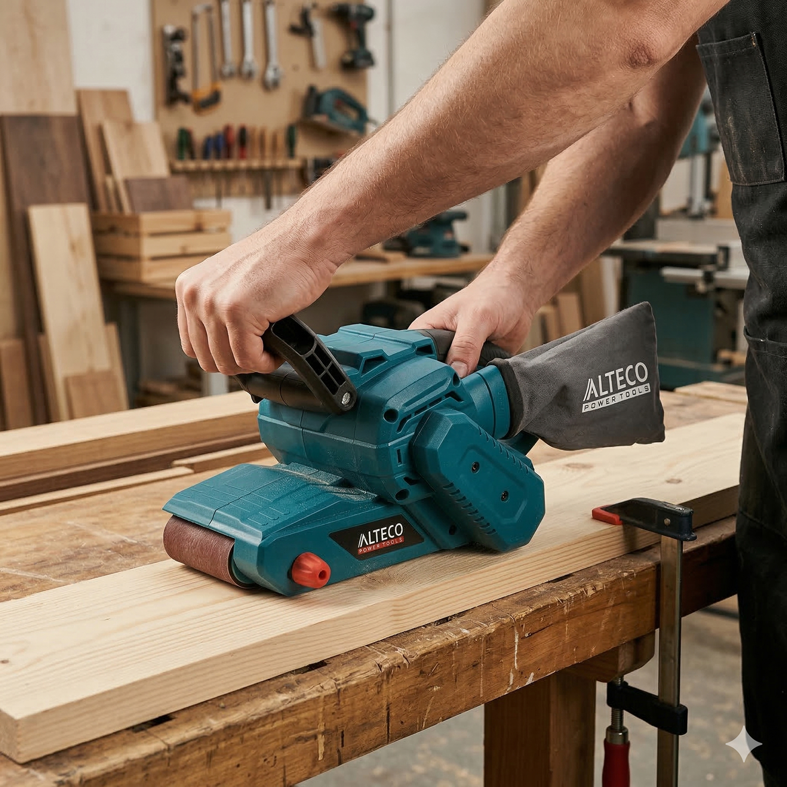 - Удобная регулировка положения ленты — позволяет быстро и точно отцентрировать ленту для стабильного шлифования.