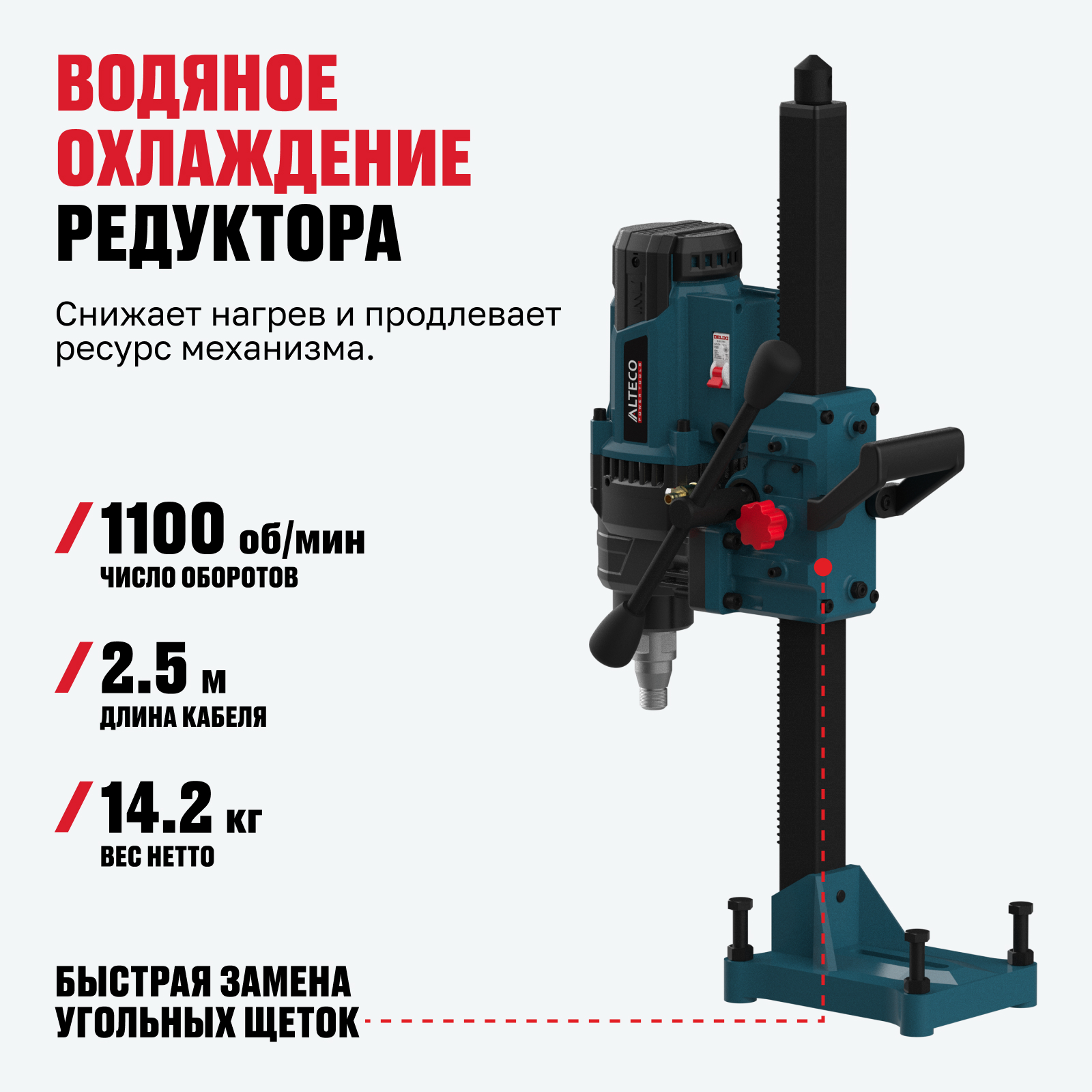 - Водяное охлаждение редуктора — снижает нагрев и продлевает ресурс механизма.
