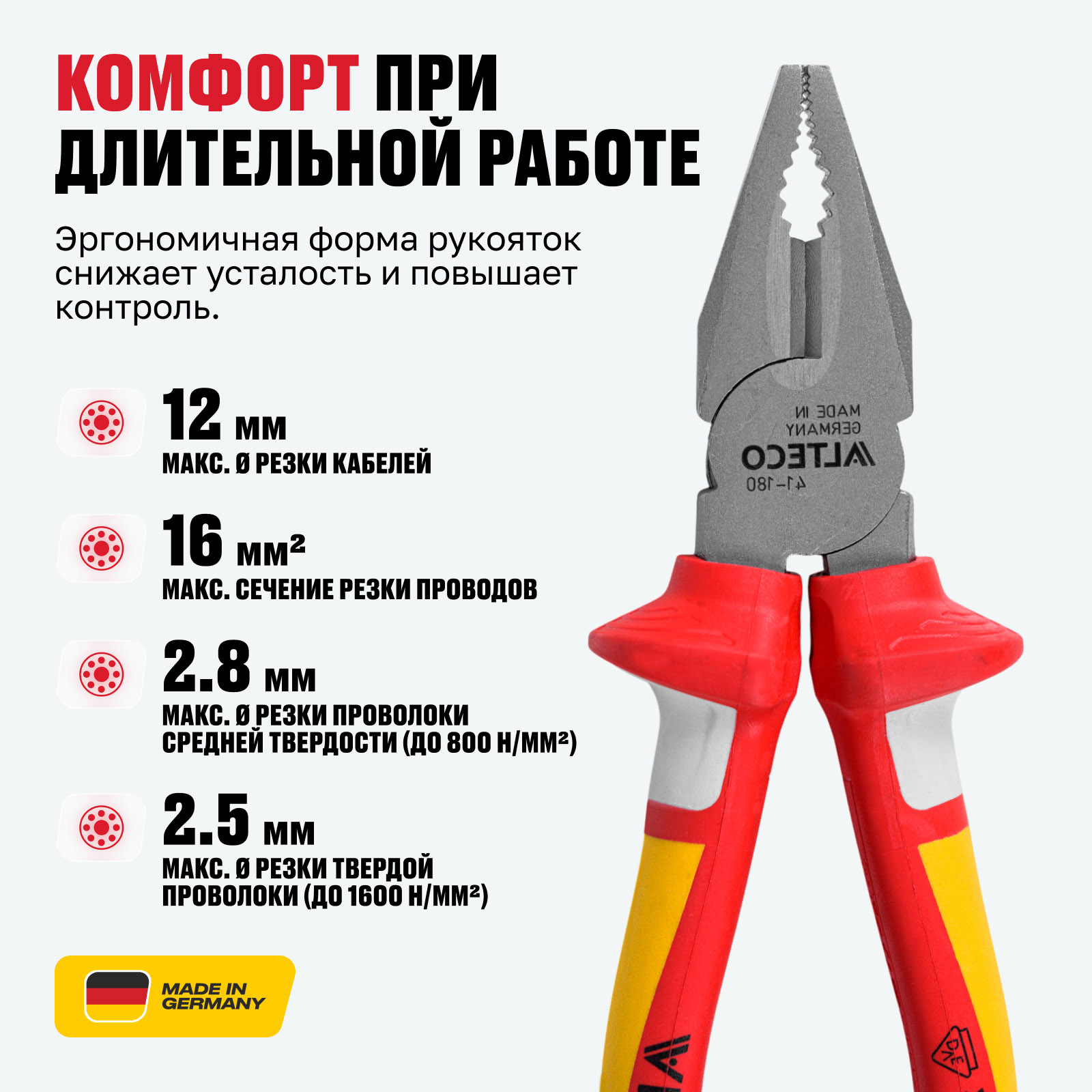 - Диэлектрическая защита до 1000 В (VDE) — рукоятки протестированы по стандарту VDE и обеспечивают безопасную работу под напряжением до 1000 В.