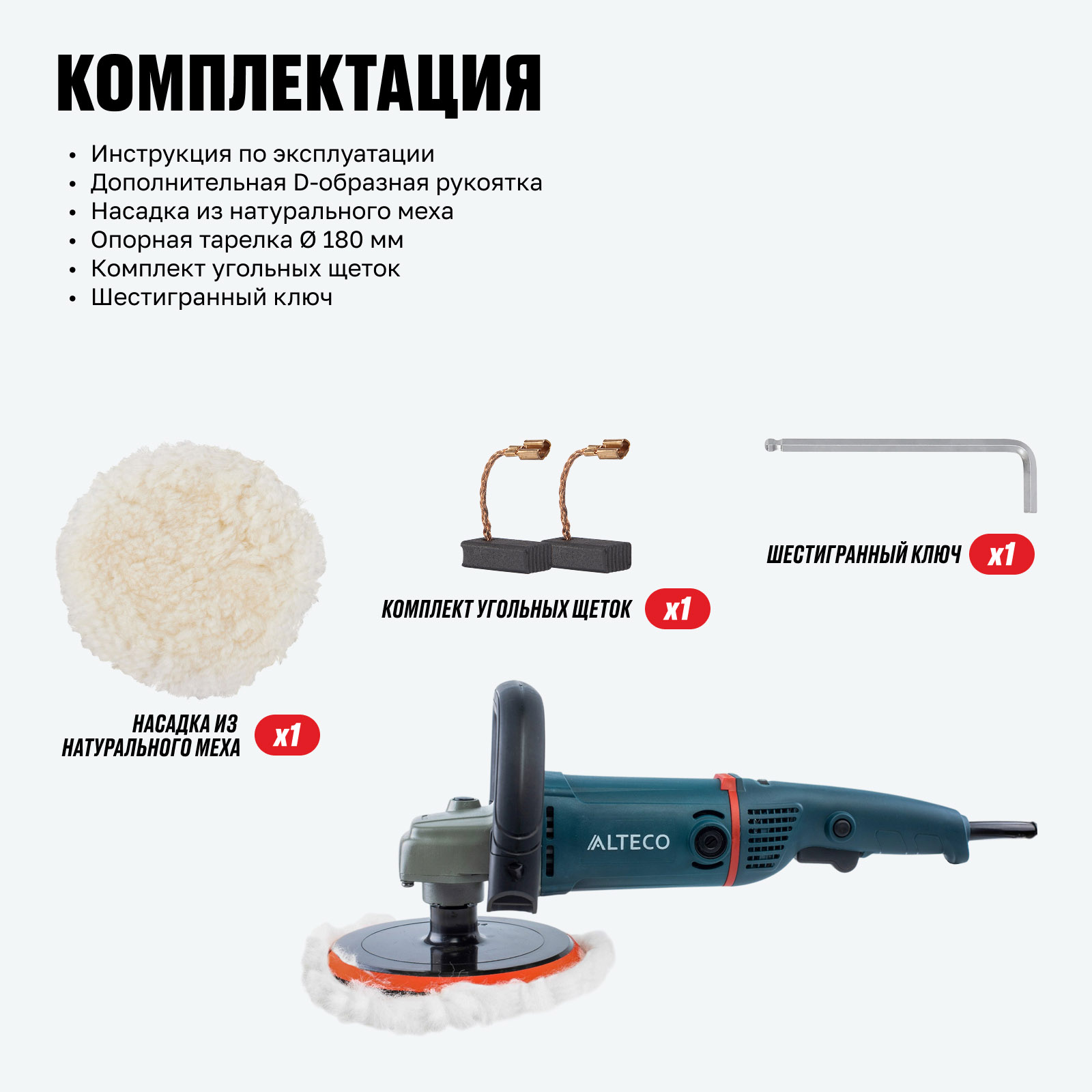 - Комплект угольных щеток × 1 шт.