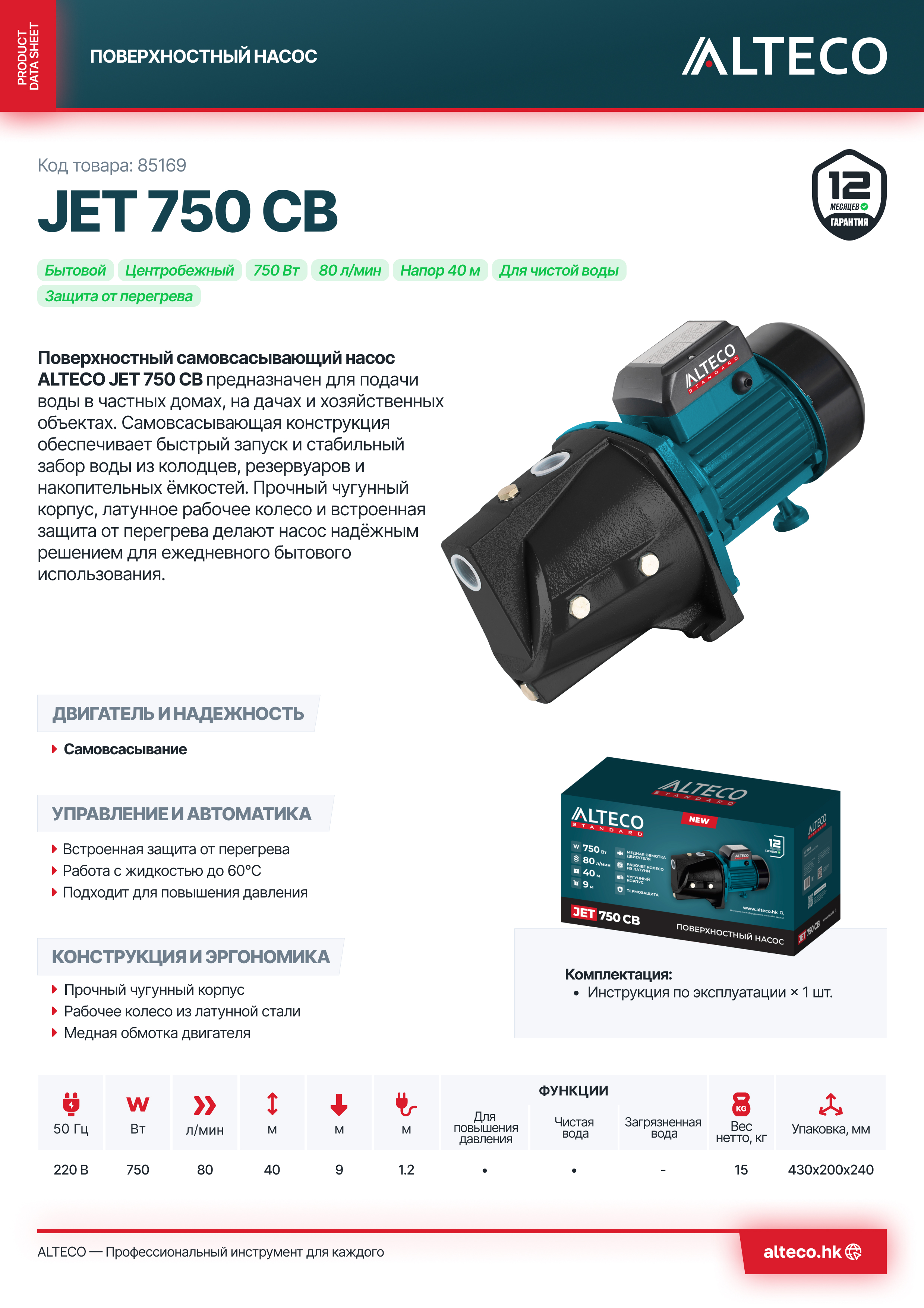 Преимущества ALTECO JET 750 CB