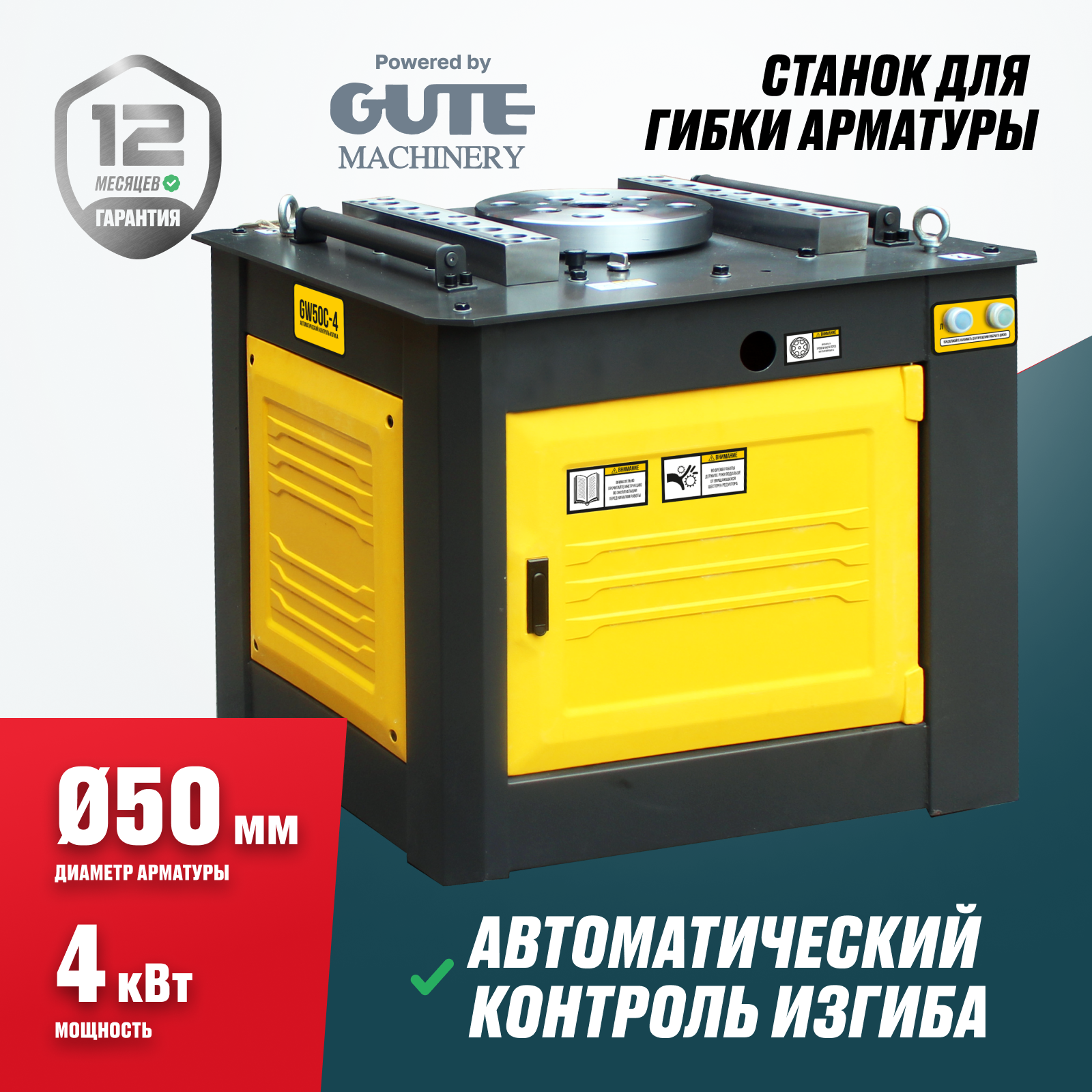- Высокая мощность двигателя 4 кВт — высокая производительность — предназначен для гибки стальной арматуры полосового, круглого и квадратного сечения.