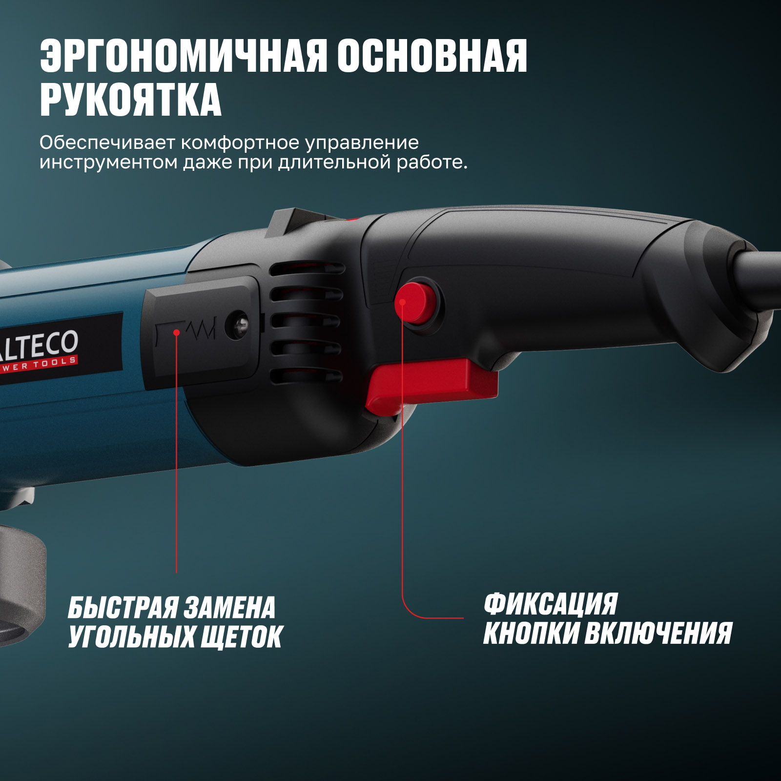 - Эргономичная основная рукоятка — обеспечивает комфортное управление инструментом даже при длительной работе.