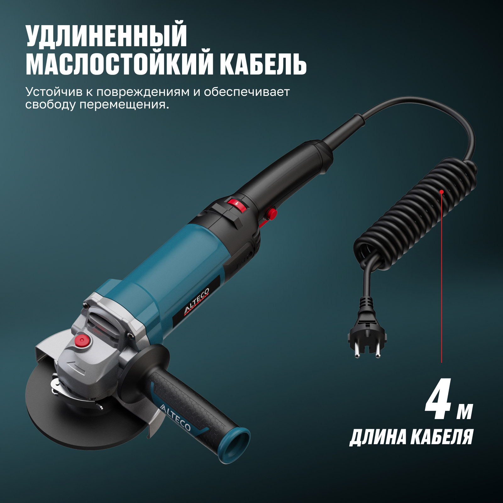 - Удлиненный маслостойкий кабель 4 м — устойчив к повреждениям и химическим веществам, обеспечивает свободу перемещения.